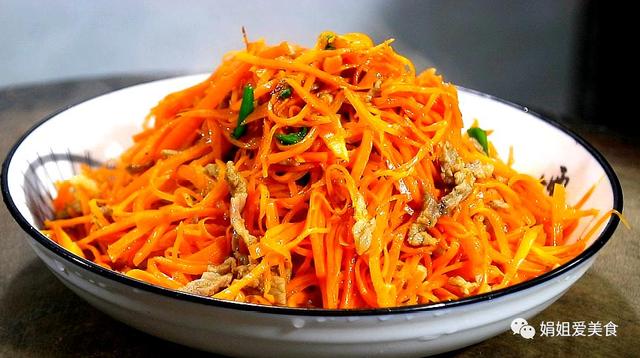 【材料】豆芽200克,韭菜100克,鹽適量,食用油適量。 【做法】將豆芽洗凈,韭菜洗凈切段備用。熱鍋涼油,將豆芽翻炒至變軟,加入韭菜繼續(xù)翻炒,加鹽調(diào)味即可。 胡蘿卜炒肉絲