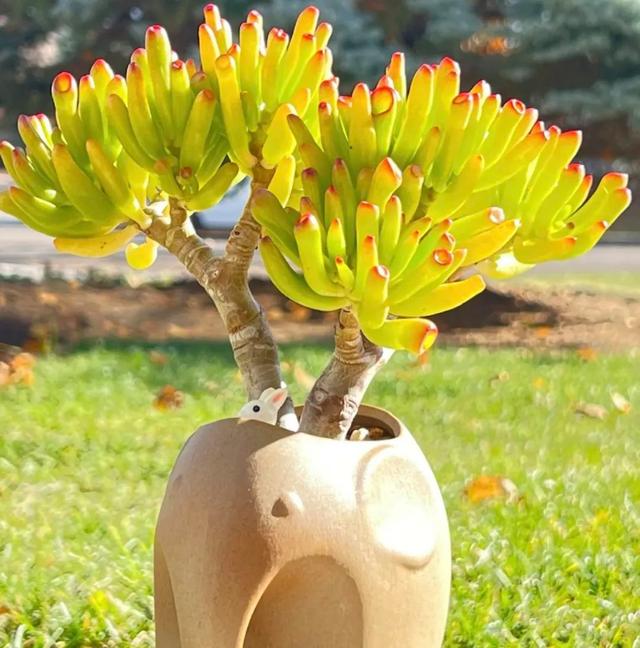 筒葉花月是一種多肉植物,也叫吸財(cái)樹,可以吸收八方之財(cái),在當(dāng)下被稱為是一種又好養(yǎng)又好看又吉祥的小盆景。它的葉片似乎像吸管一樣,可吸納財(cái)富和好運(yùn),養(yǎng)在家里也十分吉利,而且辦公桌上也會擺放一盆,緩解視疲勞,降低負(fù)情緒,促進(jìn)事業(yè)蓬勃發(fā)展。 吸財(cái)樹的葉片顏色并不統(tǒng)一,有綠有黃也有紅,葉片飽滿,外形勻稱,可以儲存大量水分,所以耐旱性很強(qiáng),似乎是有不死之身,也是一種懶人花。土壤要選擇透氣,排水性好的沙土,可以加入少量的煤渣,此外多接觸柔和的光照,避免強(qiáng)光。 錢串子