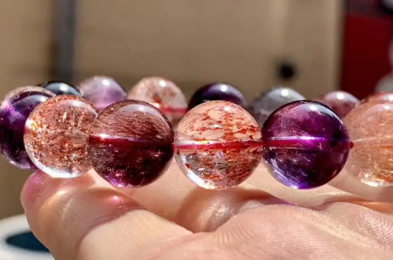 超七的外部晶體呈紫色,包裹體呈紅、黑、褐、金等顏色,超七水晶的晶體越純凈、發絲、針狀的 礦物質越繁密且均勻分布,品質越好。純天然超七水晶大多有棉絮、冰裂等特性,冰裂越少的天然超七水晶收藏價值越高。