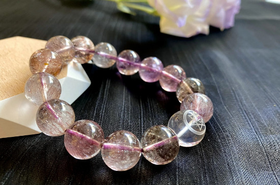 超七是水晶,代表的是同一個水晶里面含有七種不同的礦物質元素,內部的七種共生物質呈發絲狀或者閃光狀,分別為紫水晶、透明水晶、茶晶、黃磷、金紅石、鐵礦和纖鐵礦,屬于非常罕見的水晶品種。天然的超七水晶晶體純凈,發絲、針狀的礦物質繁密且均勻。 超七是水晶