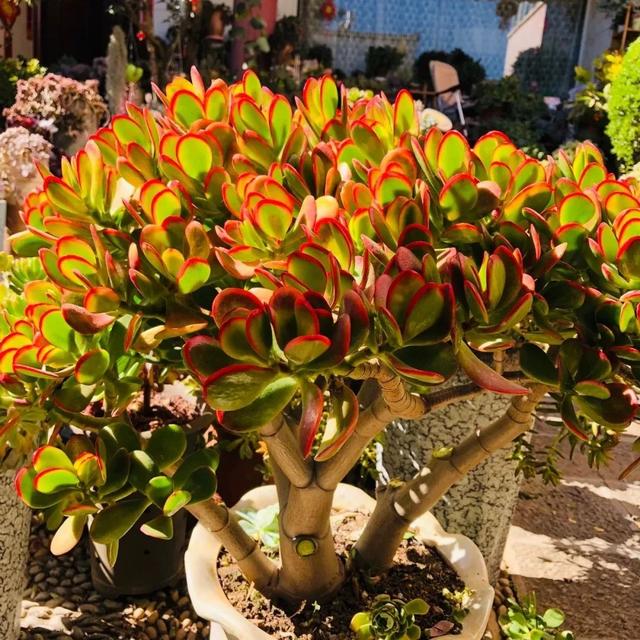 玉樹的品種并不單一,比如姬花月,黃金花月,落日之雁,筒葉花月等等,葉片顏色形狀略有不同,但都具備一種古老蒼勁的氣質,莊重而典雅,適合裝飾書房客廳或陽臺,是非常流行的室內盆花。