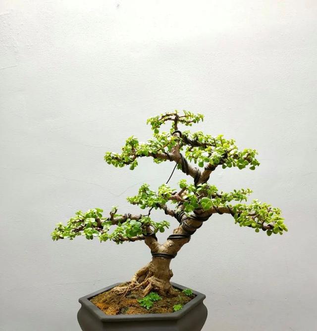 金枝玉葉是一種多肉植物,也是一種灌木。金枝玉葉的葉片小而精致,呈倒卵形,幼苗時期的枝條顏色為紫紅色,經過陽光的照射之后,逐漸變成紅銅色,這一顏色的轉換,也成功的提升了氣場。它的整體造型優美別致,深受盆景愛好者的喜愛。把它點綴在桌面和窗臺,都是最理想的選擇。 金枝玉葉的造型有很多,比如懸崖式,臨水式,樹冠式,小森林,斜干式等等,不同的造型所帶來的視覺效果不同,但是彎曲有度的枝干都能體現出生命的力量,不僅僅是一棵植物,更是藝術的體現,給環境帶來生機和活力。