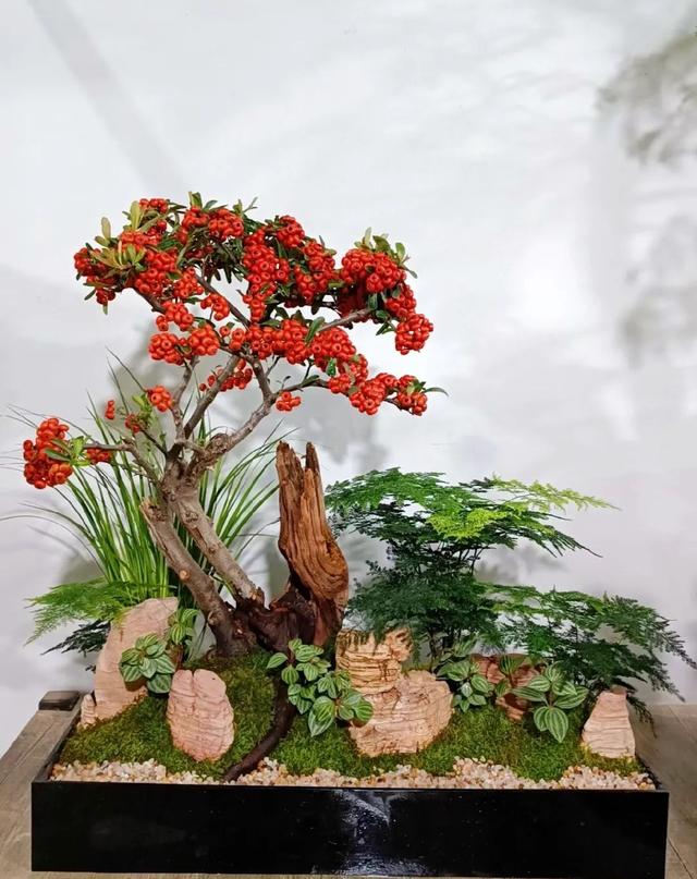 火棘是薔薇科火棘屬的常綠灌木,原產(chǎn)于東亞,因其果實(shí)成熟時(shí)鮮艷如火,常被用來(lái)制作盆景。火棘盆景以其獨(dú)特的觀賞價(jià)值和較強(qiáng)的適應(yīng)性,在園藝愛(ài)好者中頗受歡迎。 因?yàn)樗膲勖L(zhǎng),生命力旺盛,果實(shí)多,有吉祥和豐收的意義,而且還象征繁榮和昌盛,很多人都喜歡在家里或辦公室擺放一盆,能帶來(lái)好運(yùn),增加正能量。