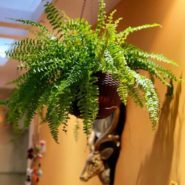 綠蘿是家庭養植中的常客,它的生命力極強,即使在較暗的角落也能生長旺盛。其蔓延的枝條能夠凈化空氣,是室內裝飾的佳品。人們在客廳,陽臺,書房乃至廚房,衛生間都可以養一盆,讓家里的角落空氣也會干干凈凈,從而有助于身體健康。 蕨類