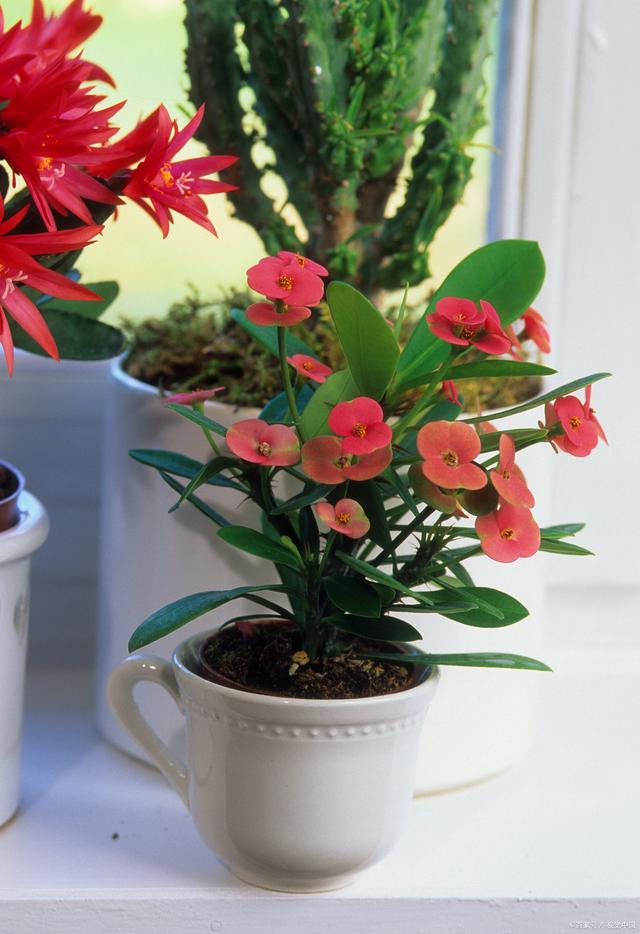 五、其他注意事項 除了以上提到的生長季節(jié)、澆水、施肥和預(yù)防病蟲害等方面,還有一些其他注意事項: 光照:虎刺梅喜歡充足的陽光,但要避免暴曬。在夏季,可以使用遮陽網(wǎng)或轉(zhuǎn)移到室內(nèi)進(jìn)行養(yǎng)護(hù)。冬季則要保持室內(nèi)光照充足。 溫度:虎刺梅的生長適宜溫度為18-25℃。在冬季則要注意保暖,保持室內(nèi)溫度在10℃以上??梢允褂帽ur膜或塑料袋進(jìn)行保溫,但要注意通風(fēng)換氣,避免植株受到悶熱影響。 修剪和整理:虎刺梅的生長速度較快,需要定期修剪和整理,保持優(yōu)美的形態(tài)。在生長期,可以剪除過長的枝條和枯萎的葉子,促進(jìn)植株的生長。同時,定期整理植株的形態(tài),讓虎刺梅保持優(yōu)美的外觀。修剪時要使用鋒利的剪刀,避免對植株造成傷害。