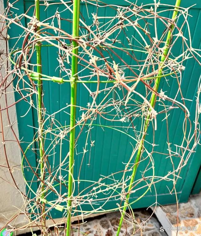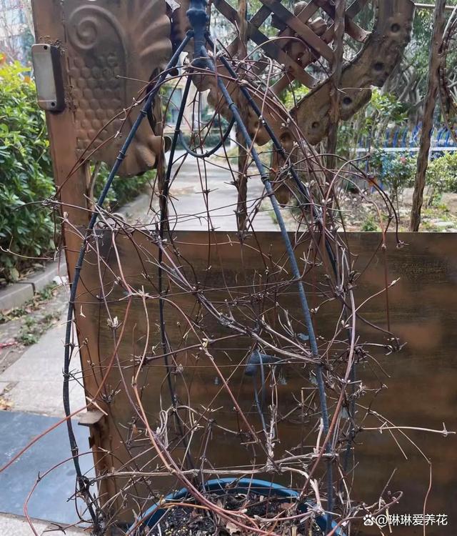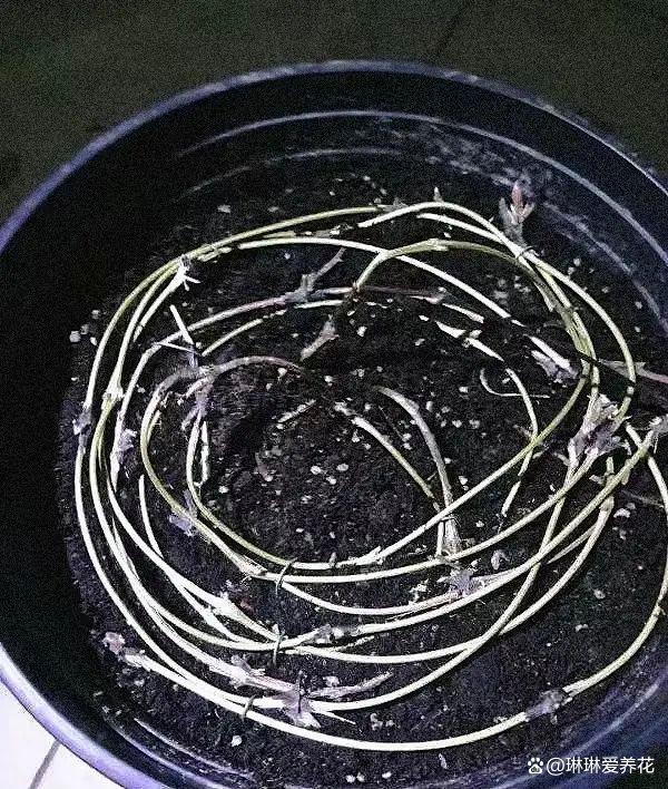 至于鐵線蓮的枝條需不需要埋到土里,不建議大家采取這種方式,把枝條埋到土里,到了來年春天,不及時的取出來,埋到土里的枝條就會扎根發芽,到頭來整個花盆里都是鐵線蓮的枝芽,處理起來會非常的麻煩,保持原有的形狀即可。