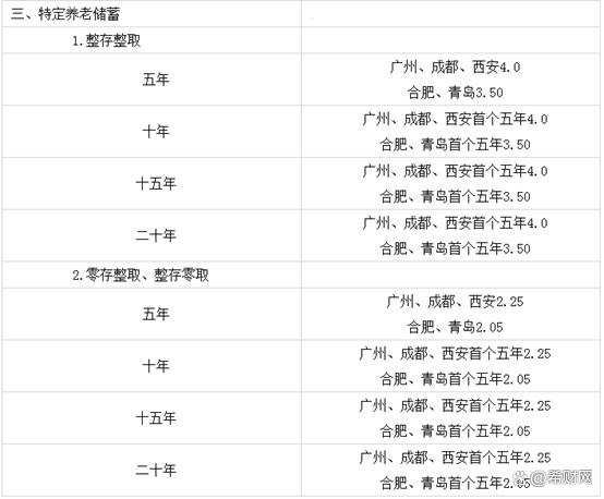 特定養老儲蓄最具吸引力的地方,應該就是它的利率較高。當然,這里的利率較高主要是相對于普通存款來說的。下方為某銀行給出的特定養老儲蓄的利率情況: