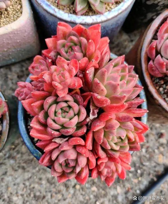 到了冬天之后,北方地區白天和夜間的溫差相差十幾度,在這種巨大的晝夜溫差條件下,放在露臺上的多肉,葉子的顏色顯而易見的就會變成紅色,變色的速度是非常快的,并且葉子基本上都會變成透紅的狀態,多肉的狀態也會達到最佳。