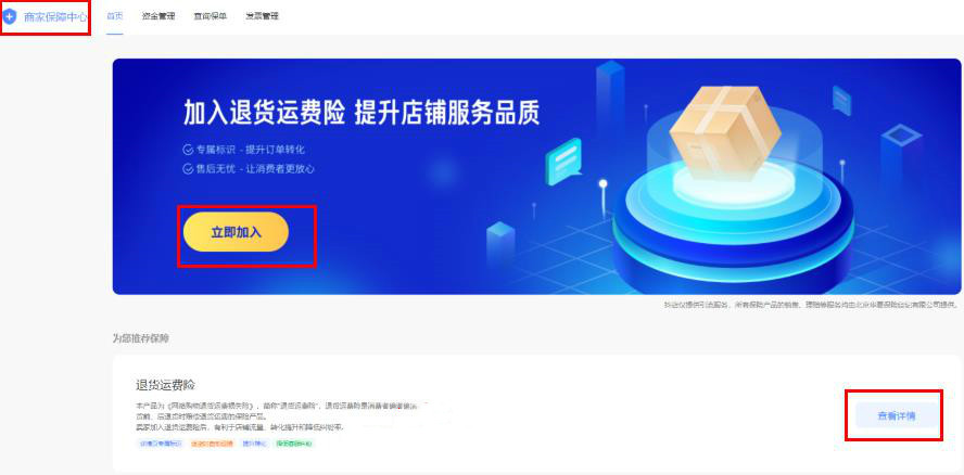 注意:退貨運(yùn)費(fèi)險(xiǎn)預(yù)充值保費(fèi)要求必須大于500元;