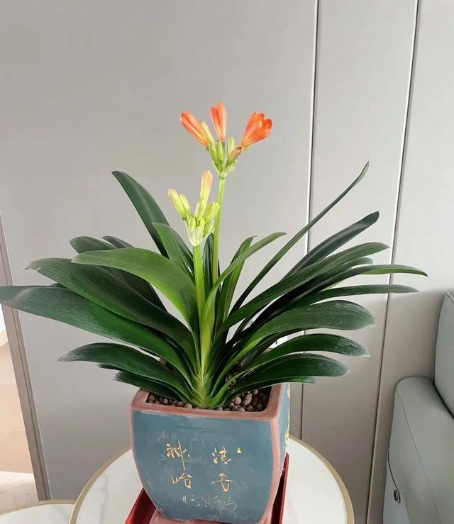 冬日的住宅中,不能缺少花草的裝飾,尤其是對于君子蘭這么理想的室內盆花,家里一定要養一盆。它是一種草本植物,也叫大花君子蘭,大葉石蒜,它的生長起來很有規矩,葉片會成對生長,每年長出4到6片,如果你購買的是幼苗,大概養上3到4年便可以開花,具備16片葉片的君子蘭便擁有了開花的條件。 葉片非常的簡單,表皮看起來并不光滑,但卻非常靚麗,優美大方,花朵多為橘紅色,華貴高雅,端莊秀氣,很適合點綴在桌面和窗臺,給生活帶來更多的喜悅之情。