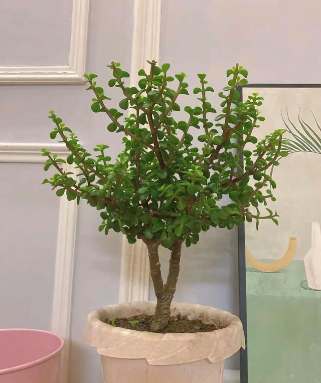 金枝玉葉似乎聽名字比較嬌氣,但實則是一個特別好養的花,屬于一個多肉植物,葉片倒卵形,觸感飽滿,色澤亮麗,樹皮紫紅色,枝干挺拔,是最簡單易造型的盆景。最常見的外形有樹冠式造型,懸崖式造型和花式造型,后兩種都需要在植株沒有完全木質化之前進行。可以把它擺放在桌面上,搭配實木家具,顯得古香古色,典雅氛圍濃郁。