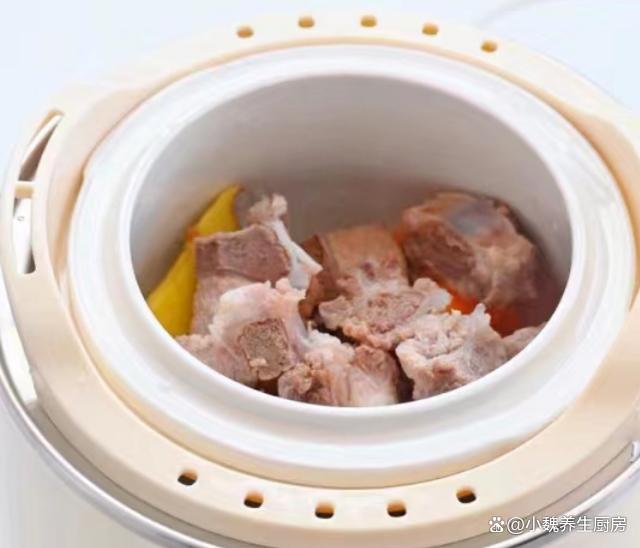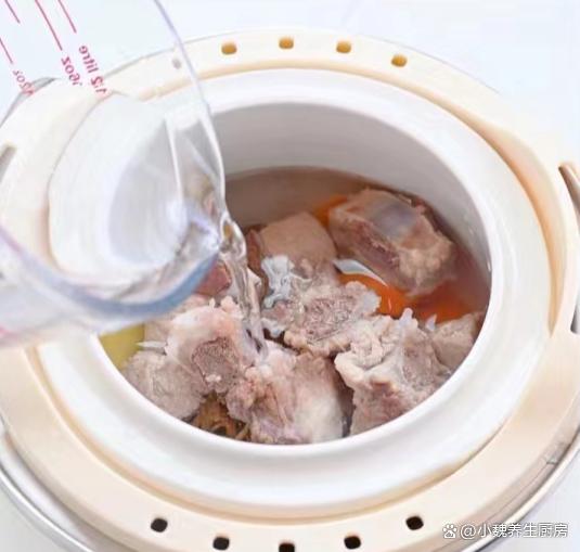 4:起鍋加上食用油,加上姜片和排骨,煸炒2分鐘左右,然后倒入砂鍋或電飯煲,鍋中放入太子參,無花果,蜜棗,麥冬和其他食材,加上足量純凈水,蓋上鍋蓋,按下煲湯鍵燉煮一個小時左右。