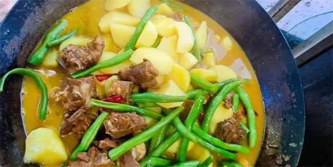 二、制作步驟: 1. 處理排骨:將排骨洗凈并剁成小塊。 2. 鹽水浸泡:將排骨放入洗菜盆中,加入一勺食用鹽,倒入足夠的清水,浸泡15分鐘。 3. 清洗排骨:將排骨簡單清洗后,放入大碗中,加入一勺面粉,混合均勻。再加入清水,反復(fù)清洗,直至水變清澈。控干水分備用。 4. 腌制排骨:將切好的姜蒜捏碎,擠出姜蒜汁,將排骨與姜蒜汁混合,腌制20分鐘。 5. 處理土豆:削去土豆表皮,切成滾刀塊,清洗后備用。 6. 準(zhǔn)備調(diào)料:切好生姜、大蒜、干辣椒,備用。 7. 炸土豆:加熱鍋中的食用油,將土豆炸至兩面金黃,撈出備用。 8. 焯豆角:將豆角焯水,撈出備用。 9. 翻炒排骨:再次加熱鍋中的食用油,將排骨翻炒至金黃色,加入姜蒜,翻炒出香味。 10. 添加調(diào)味料:加入火鍋底料、生抽醬油,翻炒均勻,使其化開。 11. 加水燉煮:加入足夠的開水,蓋上蓋子,燉煮40分鐘左右,翻炒均勻。 12. 加入辣椒:倒入干辣椒,快速翻炒均勻。 13. 加入土豆和豆角:加入炸好的土豆和焯水過的豆角,翻炒均勻。 14. 燜煮:燜煮5分鐘,讓排骨和蔬菜充分融合,直至排骨變軟爛。 15. 收汁出鍋:收濃湯汁,撒上蔥段,再次翻炒均勻,即可出鍋。 這道燉排骨土豆菜品令人垂涎欲滴。一口下去,排骨肉質(zhì)軟爛,不腥不柴,口感鮮嫩,令人回味無窮。而土豆則吸收了排骨的湯汁,入味十足,焦香四溢,令人食欲大增。這道菜品絕對是讓人無法抗拒的美食享受。