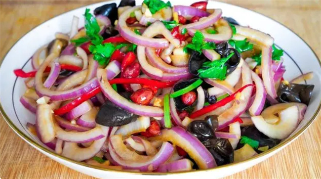 一、營養(yǎng)與美味并存的洋蔥 洋蔥作為一種常見的食材,不僅具有豐富的風(fēng)味,更擁有高度的營養(yǎng)價(jià)值。特別是在春夏季節(jié),多吃洋蔥能夠幫助提高免疫力,減少感冒的發(fā)生。洋蔥的刺激性氣味能夠刺激消化腺分泌,增加食欲。此外,洋蔥中的鈣元素有助于兒童骨骼的發(fā)育,為成長增添一份健康。 二、制作秘訣揭示 1. 準(zhǔn)備食材: 洋蔥、木耳、干辣椒段、花生米、紅青椒、香菜、蔥花、花椒、白糖、米醋、鹽等。 2. 處理洋蔥: 去頭去尾,將洋蔥切成細(xì)絲,浸泡于加入米醋和鹽的涼白開中,去除辛辣味。 3. 準(zhǔn)備木耳: 浸泡后焯水3分鐘,冷卻備用。 4. 切配蔬菜: 將香菜、紅青椒切絲備用。 5. 炸炒花生米: 炒炸花生米,增添口感和香氣。 6. 組合調(diào)味: 將所有食材放在一起,加入鹽、雞精、白糖、醬油、香油等調(diào)味料,攪拌均勻即可。