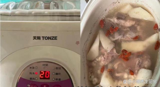 5:讓食材都燉至軟爛,放入枸杞子,加上一丟丟胡椒粉和食鹽,燜煮幾分鐘,關火即可,這道山藥薏米豬骨枸杞湯就制作完成了,秋季祛濕一定要多喝它。