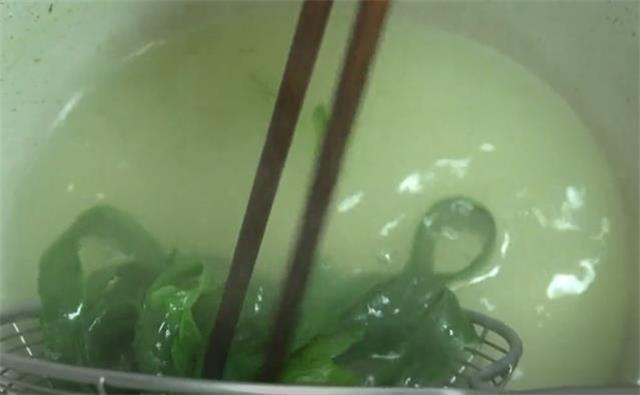 4.鍋里放入清水,把黃瓜皮放入,鍋中水開后煮2分鐘,時間到了把黃瓜皮撈出來,鍋里的黃瓜汁放涼備用。