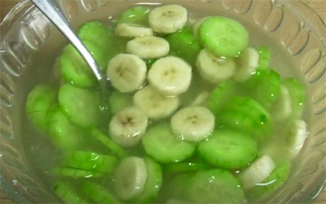 7.完全融化以后,直接把黃瓜片和香蕉片倒進去,在里面浸泡10分鐘就可以吃了,一道非常清爽的瘦身黃瓜釀香蕉就完成了,黃瓜含有較高的膳食纖維,可以蠕動腸胃,同時水分非常充足,還能增加飽腹感,晚上用它代替晚餐來食用,連續(xù)吃上三天就能看到明顯的效果,1到2個星期,大肚子就會悄悄的消失了,一星期之內(nèi)你就會有一個很明顯的變化,喜歡的朋友趕緊試試吧。  |