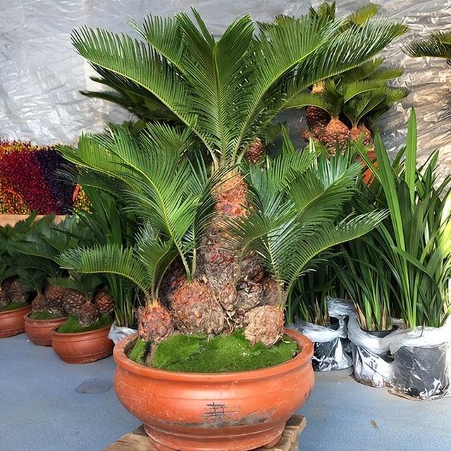 四、鐵樹 不少人都覺得奇怪,這不是種在院子里的嗎?這是什么情況?倒不是我用它來充數(shù),很多人都喜歡用它來做盆栽,用來裝飾客廳。 養(yǎng)鐵樹盆景,需要選擇疏松、有營養(yǎng)、有良好的排水性和保水性的土質(zhì)。通常都是放在南邊,靠近陽臺的位置。 確保有足夠的陽光,同時也要有很好的通風(fēng)。