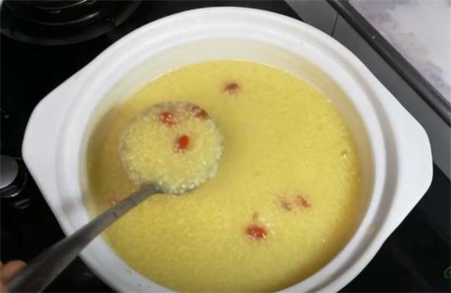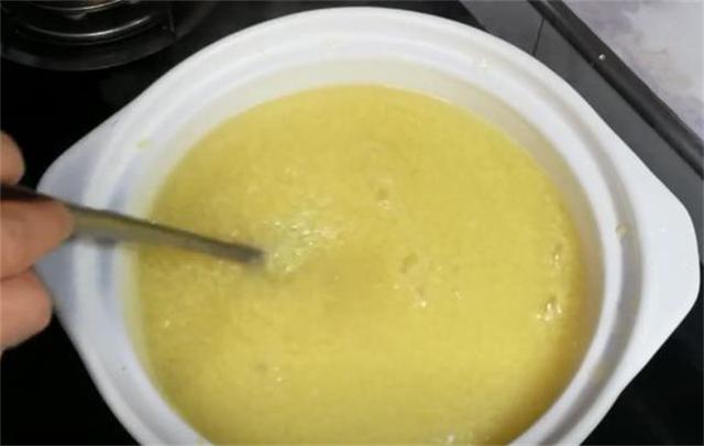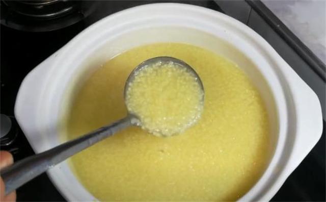 3.小米有健脾養胃的作用,但是一定要熬出米油,小米粥煮半個小時之后即可打開鍋蓋,現在的小米已經全部開花了,大家看一下,然后就要熬出米油。