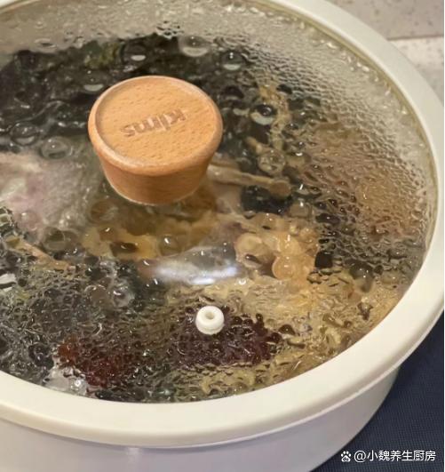 4:另外準備好一個湯鍋,放入蜜棗,菜干和冷水,大火煮幾分鐘,然后放入瘦肉和鴨腎,繼續(xù)煲30分鐘。
