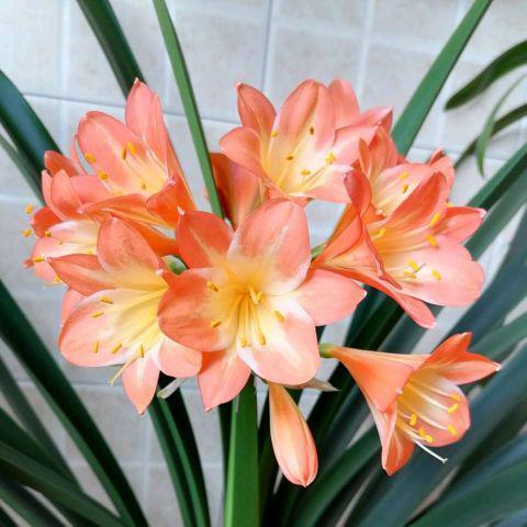 6、葉片變得深綠窄長 在養君子蘭的時候,可能會有葉子的顏色變黑,但是寬度變小,有時候葉子上的花臉也會消失,這主要是由于缺乏光照。 君子蘭對強烈的光線并不敏感,但是它對散射光的需求很大。 通常情況下,君子蘭都會在有良好散射光線和良好通風的地方飼養。