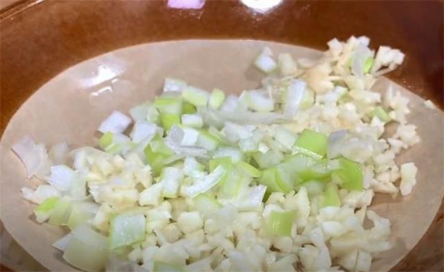4.準(zhǔn)備幾瓣的大蒜,先切成蒜片,然后給它剁成蒜末,一小節(jié)大蔥切成蔥花,切好后裝入碗中。