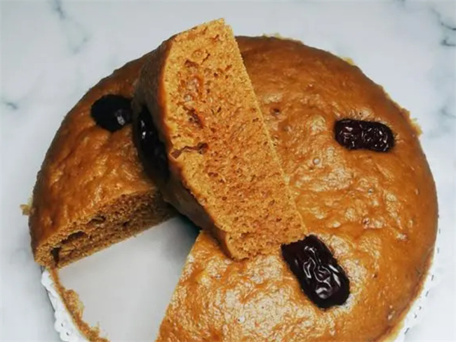 一、紅糖發糕的制作 食材:面粉160克、紅糖40克、酵母3克、雞蛋1個、紅棗3顆 二、制作步驟 1. 將雞蛋打入面粉中,攪拌均勻。在面粉中添加一個雞蛋,可以使發糕更加松軟和Q彈。 2. 用溫水將紅糖溶解,水溫降至30-40度時加入酵母,攪拌均勻。然后將混合物倒入面粉中,繼續攪拌均勻,直至形成無顆粒狀的糊狀物。 3. 取一個6寸的模具(如用8寸模具,發糕會稍薄),如果模具不是不粘鍋,可以涂抹少量油以防粘。將面糊倒入模具中,放入溫暖的蒸鍋中,發酵30分鐘,直至面糊體積膨脹至原來的2倍大小,即發酵完成。 4. 將紅棗切半并去核,擺放在發酵好的面糊上。您還可以加入葡萄干、蔓越莓等其他配料。然后大火燒開水,開始蒸煮面糊。大火蒸煮2分鐘后轉至中火蒸煮30分鐘,最后關火燜5分鐘。待蒸煮完成后,小心取出(請注意開蓋時避免蒸汽滴到發糕上)。 5. 待發糕不再燙手時,即可脫模。