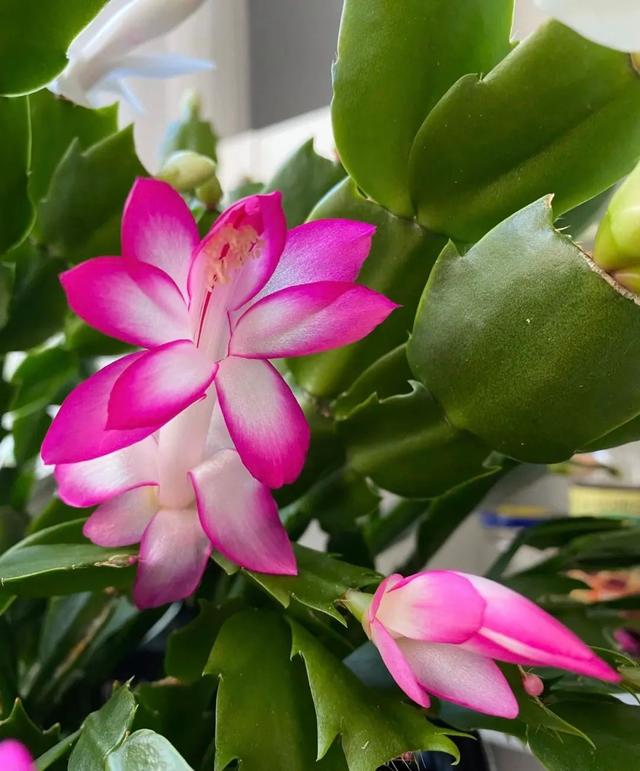 蟹爪蘭為什么也叫圣誕花?因為蟹爪蘭的花期是在圣誕節左右,恰逢節日,盛開時就像錦上添花,鴻運當頭,美麗也吉祥。 10到11月養蟹爪蘭非常重要,有些蟹爪蘭,已經掛滿了花苞,有些蟹爪蘭還沒有動靜,但卻長得枝繁葉茂,很多人不知道為什么,如果不稍加處理,今年可能就不開花了。建議大家多做一個小動作,不久就會現花苞。