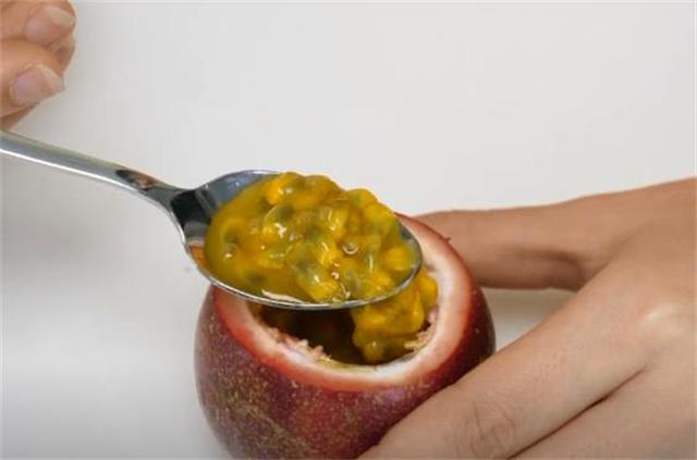 方法一,首先,我們先將百香果的頂部切開,然后用小勺子攪拌均勻,這樣就可以享用了,這種食用方式口感香甜酸爽,令人回味無窮。