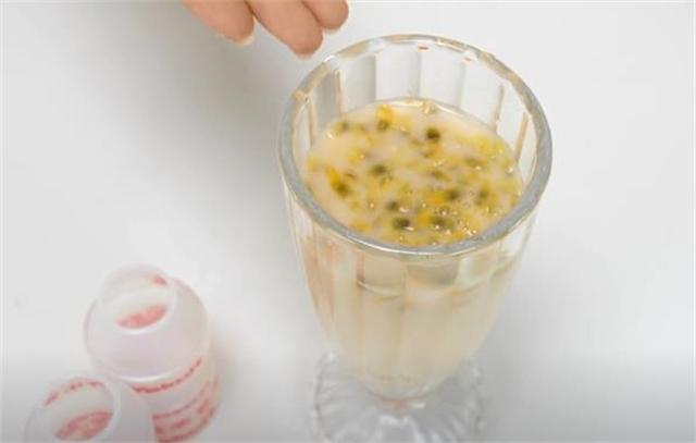 方法三,讓我們再次準備一個杯子,這次加入一顆百香果,然后倒入兩瓶養樂多,輕輕攪拌均勻,那么這樣一杯百香果養樂多飲料就完成了,這兩樣東西加在一起堪稱絕配哦,香香甜甜非常的美味,在炎熱的夏天,如果用冷藏過的養樂多或者加入一些冰塊,口感會更佳。