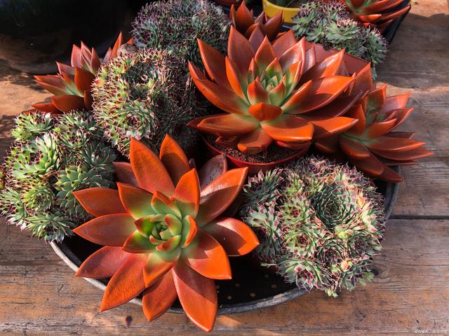 二、紅太陽多肉的養殖方法土壤選擇:紅太陽多肉需要透氣性好、排水性好的土壤。可以選擇泥炭土、珍珠巖和蛭石等材料混合配制,以提供充足的養分和保持良好的透氣性。 澆水技巧:澆水是紅太陽多肉養護的關鍵。在澆水時,要遵循“干透澆透”的原則,即等土壤完全干透后再澆水,避免過度澆水導致根部腐爛。同時,在夏季和冬季也要適當調整澆水頻率,避免過濕或過干。 光照控制:紅太陽多肉需要充足的陽光來保持健康生長。在春秋季節,可以將其放在陽光充足的地方接受全日照。在夏季和冬季,可以適當遮陰或調整光照時間,避免過度暴曬或缺乏陽光。 溫度管理:紅太陽多肉適宜的生長溫度為15-25℃。在夏季高溫時,要注意采取措施降溫,避免高溫對其造成傷害。在冬季低溫時,也要采取保暖措施,避免紅太陽多肉受到凍傷。 施肥技巧:在生長期間,可以每隔1-2個月施一次有機肥或復合肥,以提供充足的養分。施肥時要遵循“少量多次”的原則,避免過量施肥導致燒根。