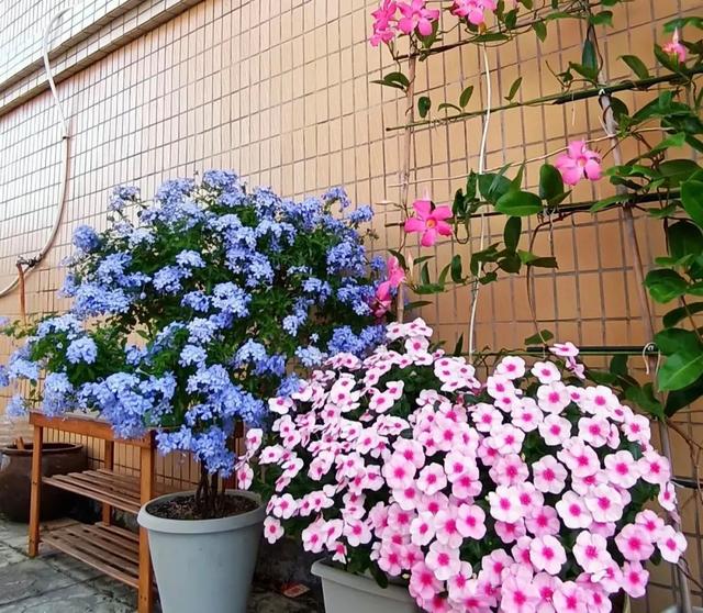 秋天的陽臺上擺放著三種美麗的花草植物,每天都能欣賞到它們綻放的花朵,仿佛四季如春,給人一種輕松擁有花海洋的感覺。這三種花草植物都是真正的爆花機器,它們的花期漫長,開花量大,讓人陶醉其中。 三角梅