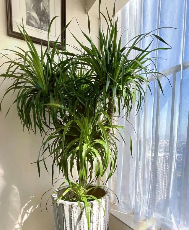 在風水學中,鶴望蘭被認為是吉祥的象征。它的大葉片代表著繁榮與財富,而其獨特的鏤空則象征著機會與希望。許多人相信,擺放鶴望蘭可以為家中帶來好運與財富。 培養鶴望蘭并不困難。它需要充足的光線,但要避免直射陽光,擺放在朝南的屋子里,接觸到柔和的光照即可。鶴望蘭喜歡濕潤的環境,所以要定期為其澆水,但要避免過度澆水,平時也要一定注意通風。此外,鶴望蘭的根系發達,需要較大的盆栽空間,定期更換花盆土壤,以確保其健康成長。 龍血樹