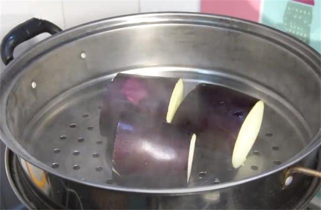 4.切好的茄子咱們上鍋,等水開(kāi)了蒸上15分鐘。