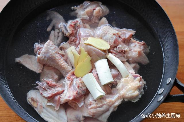 2:幾個(gè)無花果溫水泡發(fā),干桂圓去掉內(nèi)核,沙參用涼水沖洗干凈,紅棗洗干凈去核切塊,枸杞子用冷水沖洗,控干表面的水分。 3:一大塊生姜去皮,切成若干薄片,大蔥切成小段,另外起鍋放入雞肉,加上一些蔥段和生姜片,把雞肉大火焯水處理,逼出里面的血腥物質(zhì)。