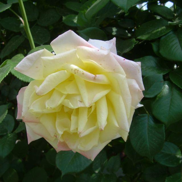 經過這么熱又下雨的日子,你家的月季還好么? 我家的有好幾朵生了黑斑,不過都救活了,只有一株葉子落得厲害,其余的都很好。 但他的一些朋友家里的月季,卻沒有那么好的運氣,有的還成了光桿司令。