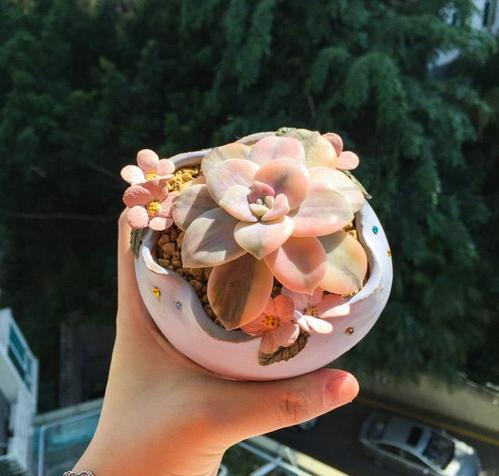 5、華麗風(fēng)車(chē) 秋天的時(shí)候,要多曬太陽(yáng),這是多肉中最漂亮的一種,上色之后,它就會(huì)變成粉色,葉子上還覆蓋著一層白色的冰霜,看起來(lái)很是夢(mèng)幻。 但是,在著色的同時(shí),也不要忘記平時(shí)的管理,要適時(shí)的澆水,否則會(huì)影響它的生長(zhǎng)。