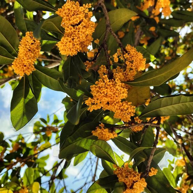 3、驚喜3:桂花開了 十月,是桂花盛開的季節(jié),以金桂,銀桂,四季桂為主,十月賞桂,聞花香,以金桂、銀桂為主,尤其金桂,在南方幾乎到處都能看到,路邊,公園,小區(qū),庭院,陽臺,到處都是。 盡管到處都有,但在這兩個月里,桂花的香氣依然十分誘人。到處都可以看到有人在采摘桂花。