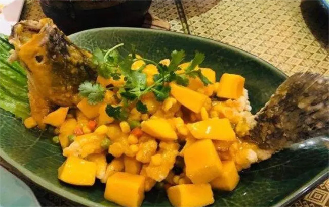 1. 香芒鱸魚 食材:鱸魚、芒果、青紅辣椒、洋蔥、雞蛋、鹽、吉士粉、淀粉、食用油。 做法: 鱸魚切塊,拍打上淀粉、吉士粉、雞蛋的混合物,炸至金黃色。青紅椒、洋蔥翻炒,加入炸好的魚塊,芒果醬,芒果丁,翻炒均勻即可。 2. 烤鱸魚 食材:鱸魚、烤魚汁、調(diào)味料。 做法: 鱸魚腌制后,入烤箱烤至金黃,制作烤魚汁,澆在烤魚上,撒上花生碎、芝麻、蔥花即可。