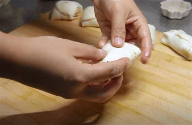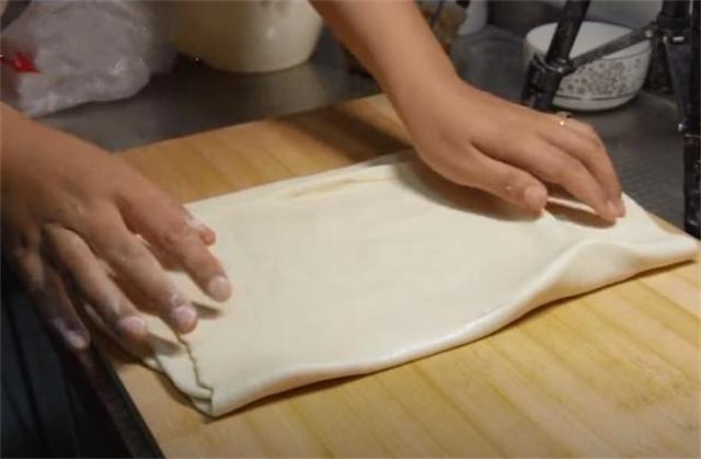 7.把劑子的兩端對折,然后按壓成餅的形狀。