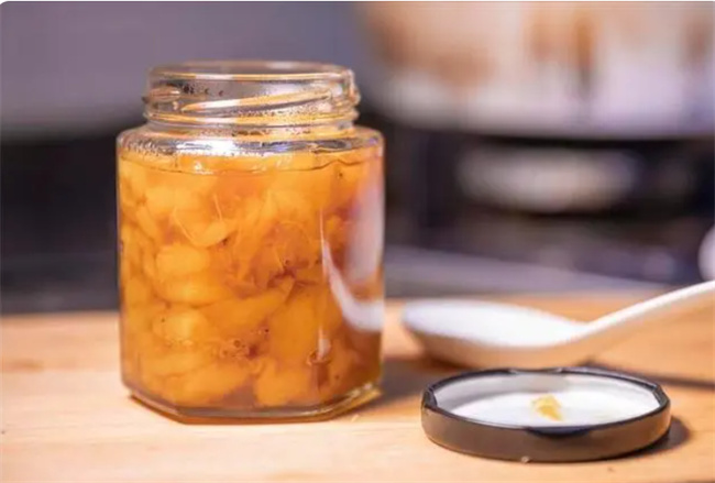 一、所需材料: 枇杷1000克、川貝20克、冰糖200克 二、做法 1. 準(zhǔn)備約2斤新鮮的枇杷,仔細(xì)檢查是否有壞掉的,將不好的部分剔除。隨后將枇杷放入清水中徹底清洗,去除外皮和核。 2. 將切好的枇杷塊放入較大的盆中,倒入適量的冰糖,稍微攪拌后進(jìn)行腌制。靜置一個晚上,冰糖會逐漸融化,枇杷也變得更加軟糯。將腌制好的枇杷和冰糖全部倒入鍋中。 3. 加入川貝,然后以大火開始熬煮。這個過程需要一些耐心,大約煮40分鐘左右。期間需要時不時攪動,以免溢鍋或糊鍋。過了約40分鐘后,將火調(diào)至中小火,繼續(xù)煮制30分鐘左右。 4. 當(dāng)枇杷呈現(xiàn)出金黃色透明狀的狀態(tài)時,即可說明煮制完成。等待冷卻后,將枇杷膏裝入無水無油的罐子中,密封好后放入冰箱冷藏保存,便可悠然享用。這份枇杷膏可以保存相當(dāng)長的時間。