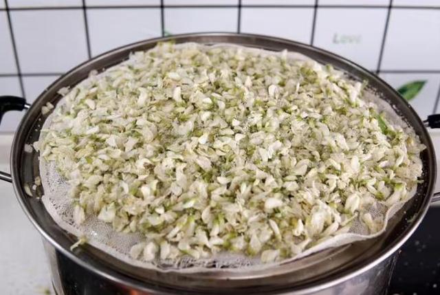 將蒸鍋加熱至水開后,放入槐花開始蒸煮。蒸煮時間一般為5-10分鐘,具體時間可以根據花瓣的大小和數量來調整。蒸好后,關火讓槐花自然冷卻至室溫即可。這樣蒸出來的槐花會松散不粘連,口感更佳,也更容易吸收調料的味道。