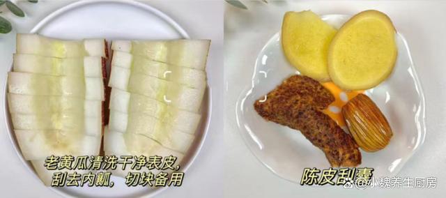 3:生姜切成一些片狀,陳皮溫水泡發,蜜棗洗凈去核,胡蘿卜去皮切掉兩頭,切成若干滾刀塊。(www.ws46.coM)