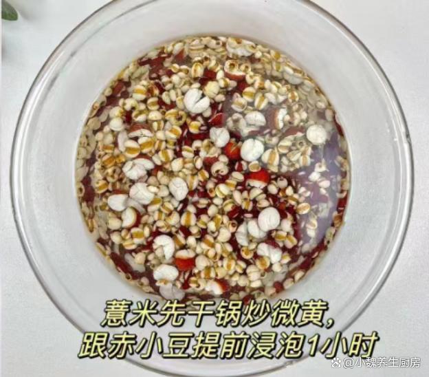 1:提前挑選好老黃瓜,胡蘿卜,豬骨和其他食材,準備好一個容器,將薏米,赤小豆,芡實放在碗中,加上適量清水浸泡,大概需要泡發1到2個小時。