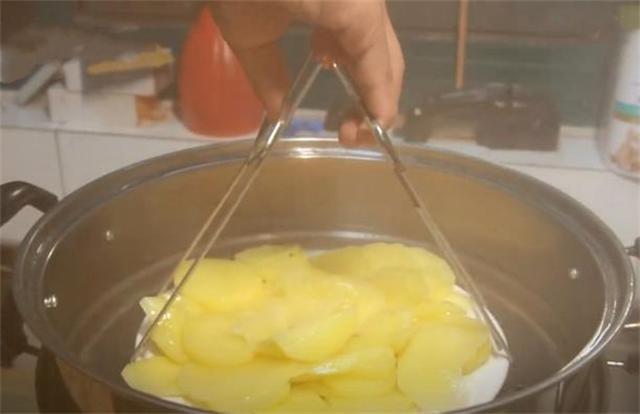 1.土豆洗干凈切薄片,上鍋蒸熟取出。
