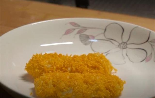 5.先裹一遍清水,再裹一遍面粉,最后沾適量的面包糠,按照這個方法依次制作。