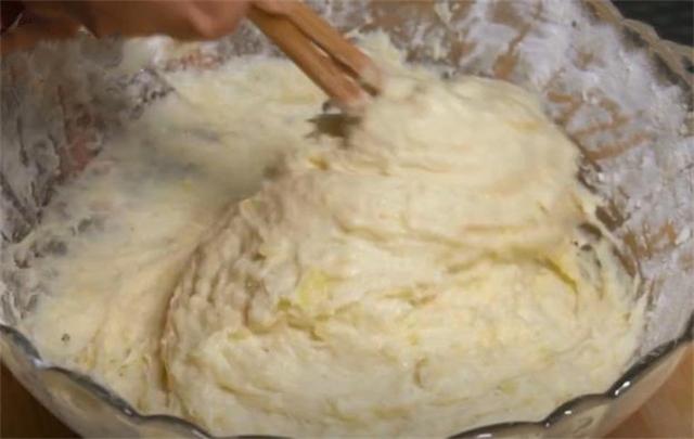 3.在土豆泥中加入3勺面粉、適量椒鹽、一小勺五香粉、食鹽、清水和面,邊倒邊攪拌,和成比較粘稠的面團備用。