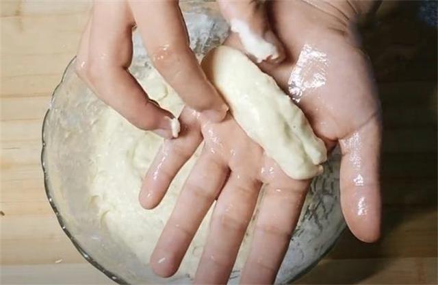 4.手掌心抹油,直接抓取適量的面糊,整理一下形狀。(www.ws46.cOm)
