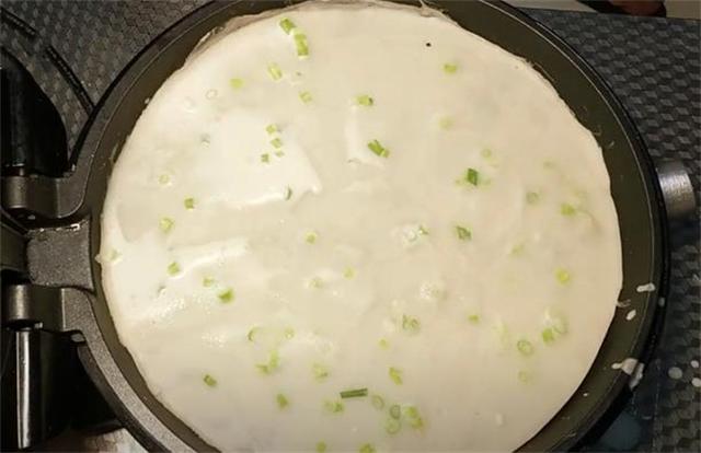 1.準備500克的面粉,加入兩克鹽,用清水和面,邊倒邊攪拌,攪拌成沒有明顯顆粒的面糊,加入適量的蔥花,繼續攪拌均勻。