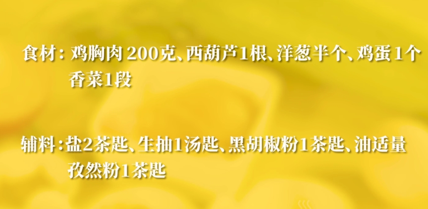 首先,你需要以下材料: 雞胸肉 200克 西葫蘆 2個 雞蛋 2個 中筋面粉 1/2杯 橄欖油 適量 鹽 適量 黑胡椒 適量 步驟一:準備材料 選取新鮮的雞胸肉和西葫蘆。把雞胸肉切成塊,然后用食物處理器打成肉餡。同時,把西葫蘆洗凈,刮去表面的皮,再擦成細絲。